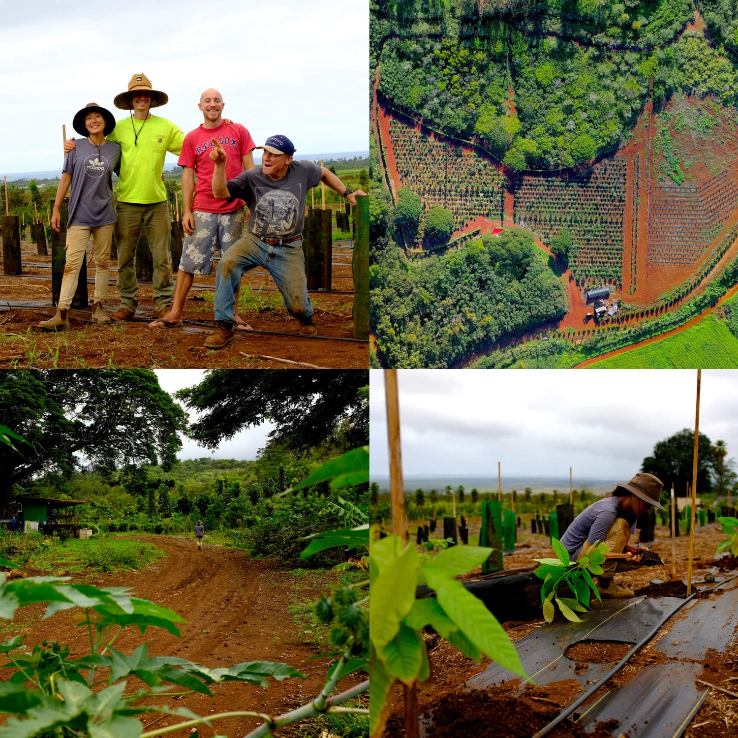 Mount Ka‘ala, featured on this package, is O’ahu’s tallest peak. The Kamananui cacao orchard sits nestled in Ka‘ala’s foothills, distinguished by its red soil, large monkey pod trees, wild pua‘a (boar), and peacocks. This farm is named after, and located in the Kamananui ahupua‘a. An “ahupua‘a” is a traditional Hawaiian land division system that extends from the mountains to the sea, encompassing all the resources needed for self-sufficiency. The name Kamananui is derived from the Hawaiian words nui, meaning “big,” and mana, meaning “path,” translating to “wide path.”